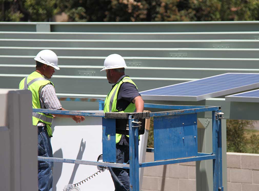 Covered parking solar structures protect your tenant and customer’s vehicles and add additional energy savings.