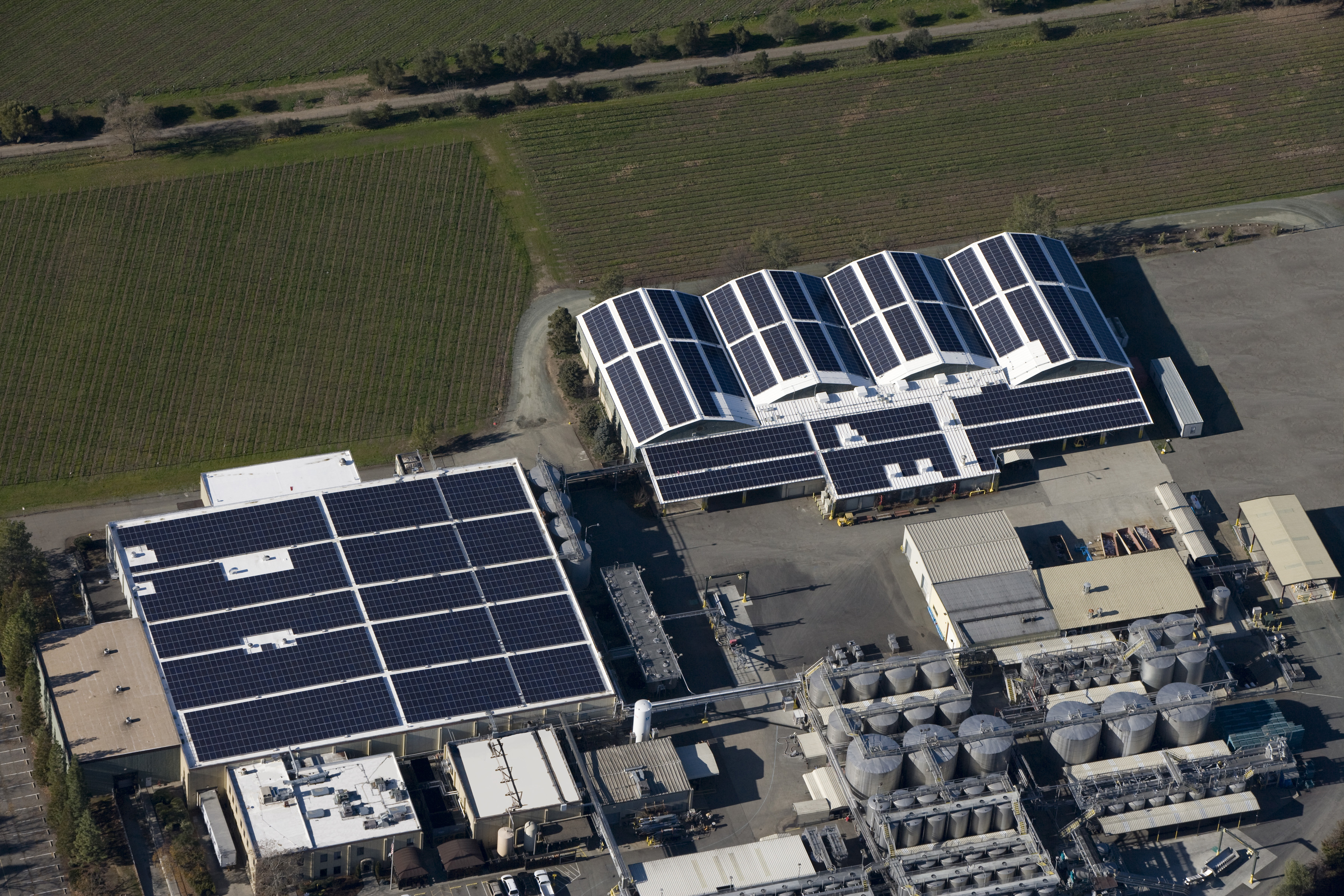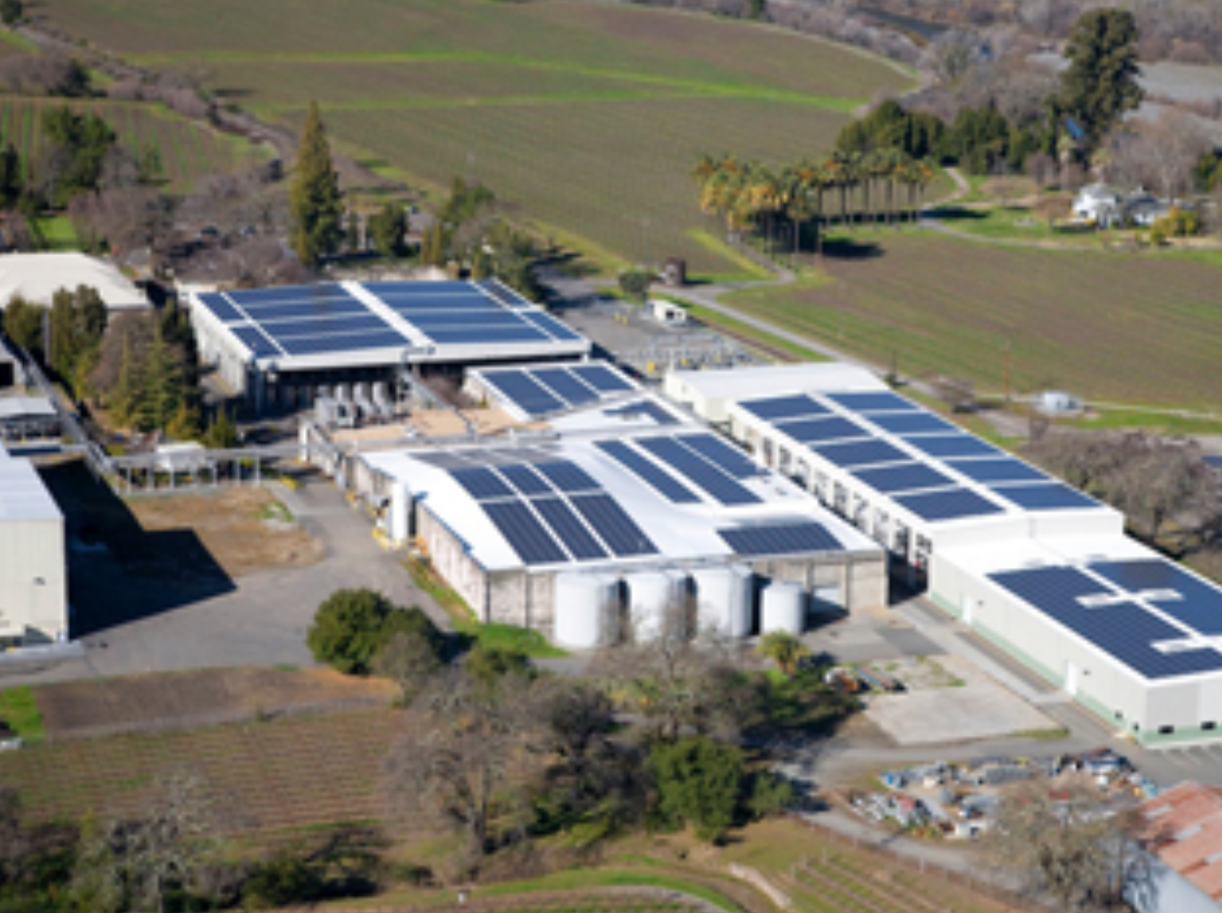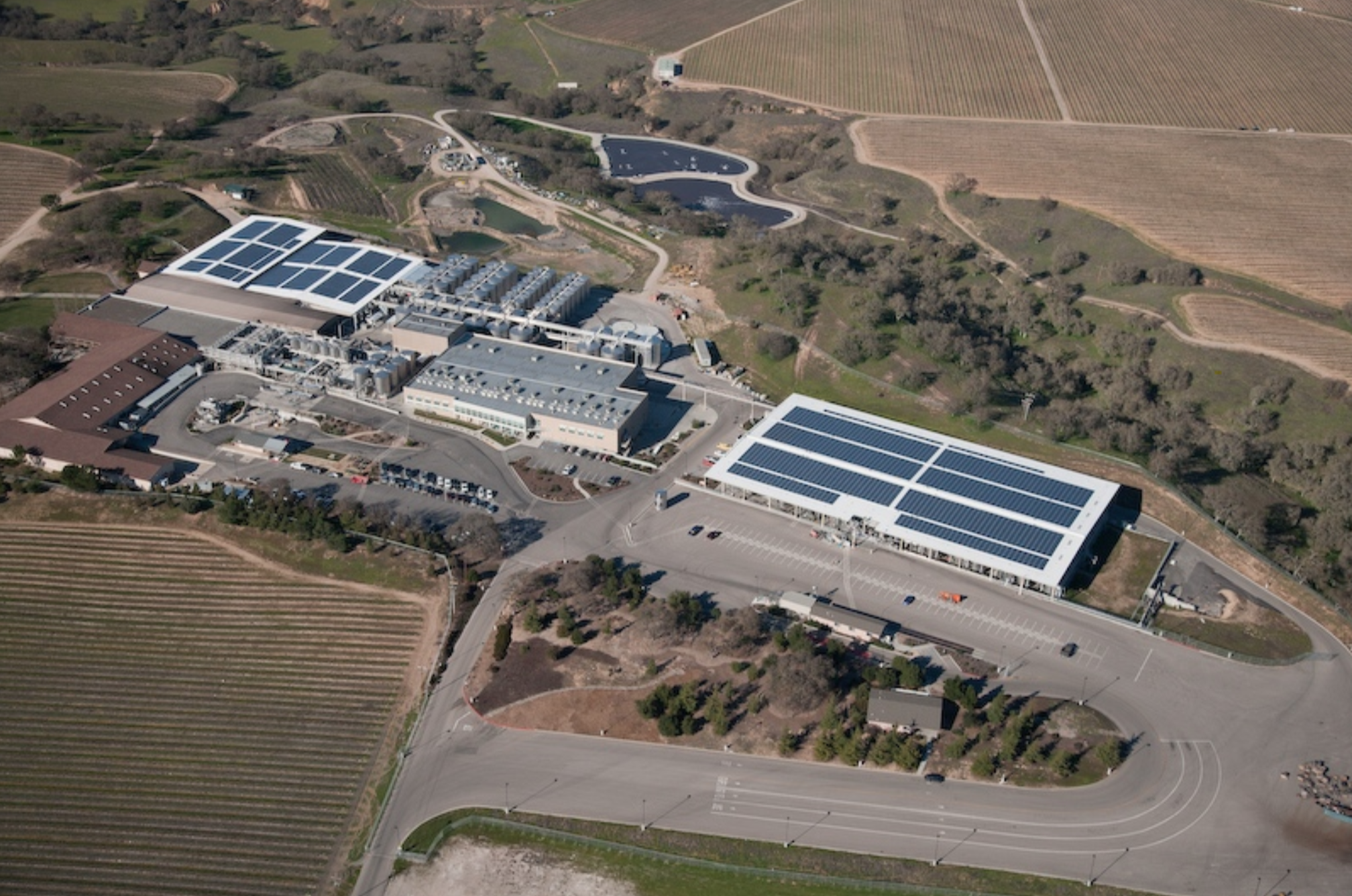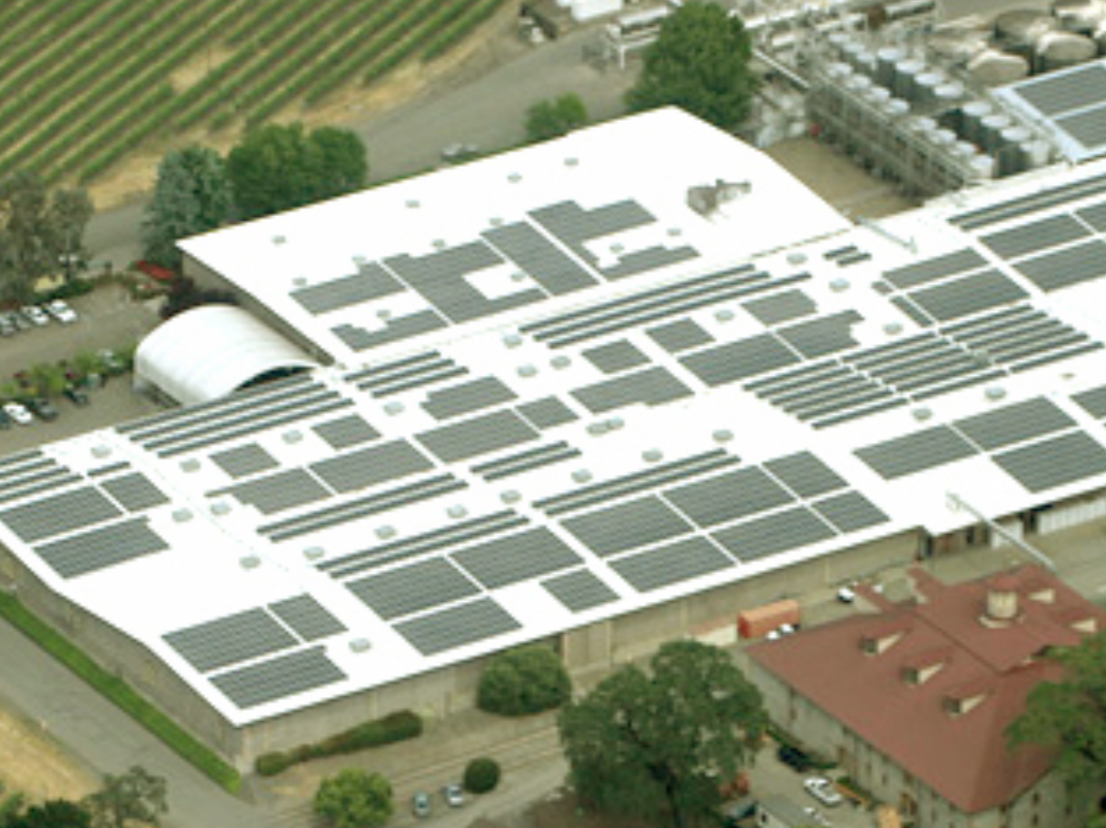 Featuring a custom solar covered canopy structure to house the winery’s fermentation tanks and production area, the 150,000 sq.ft. integrated roofing and solar installation is 1.2 MW (DC) and produces 1,683,594 kWh per year.