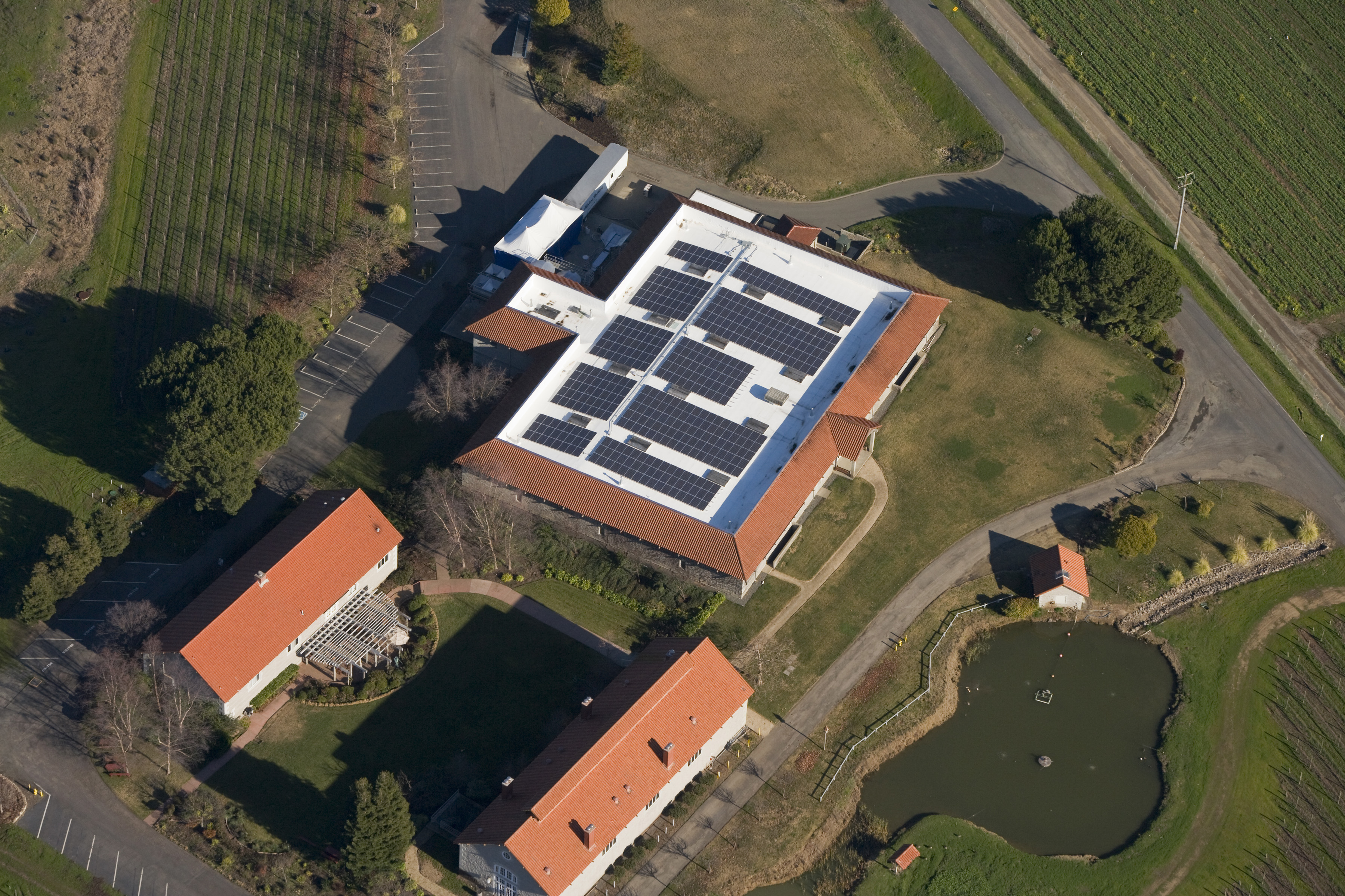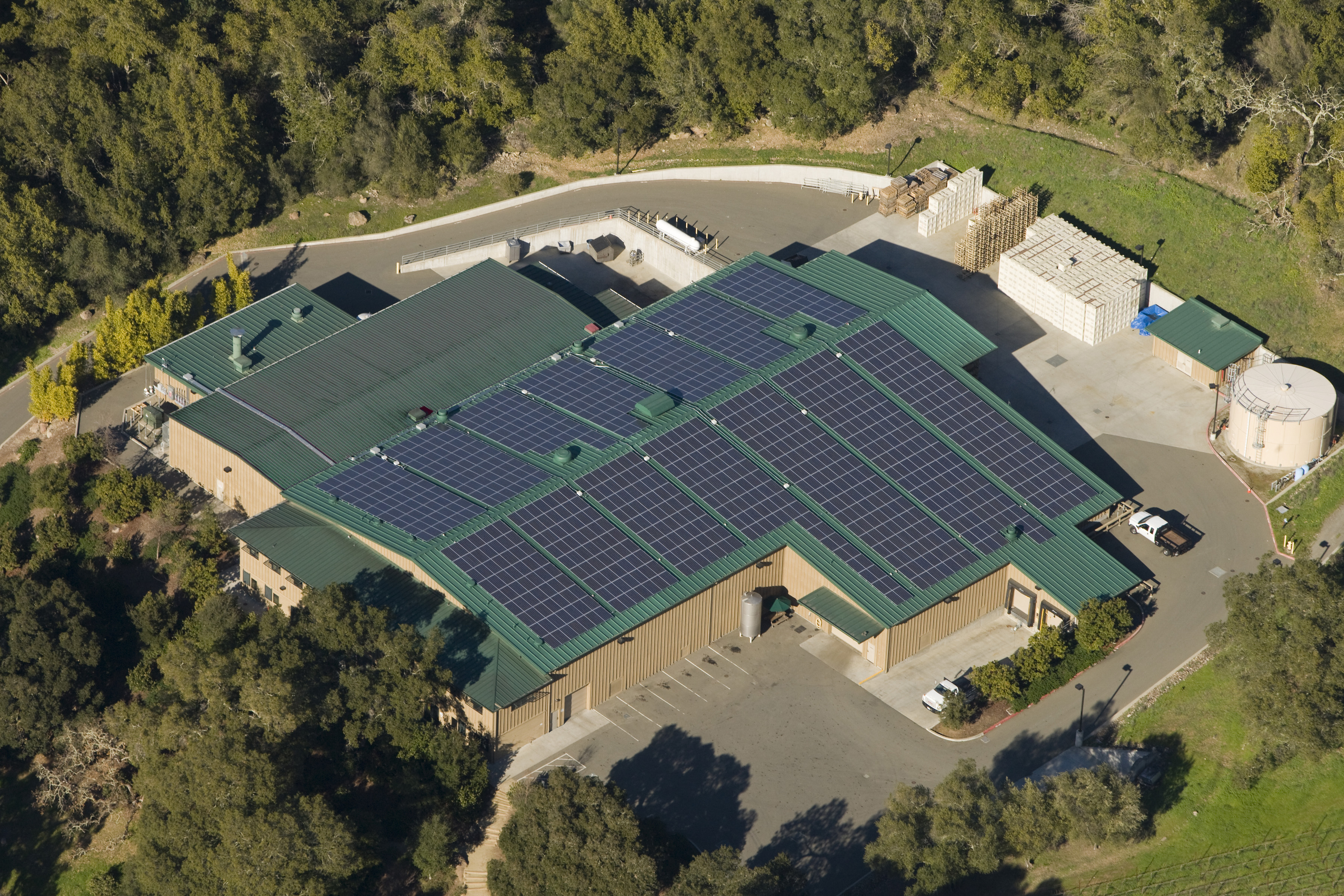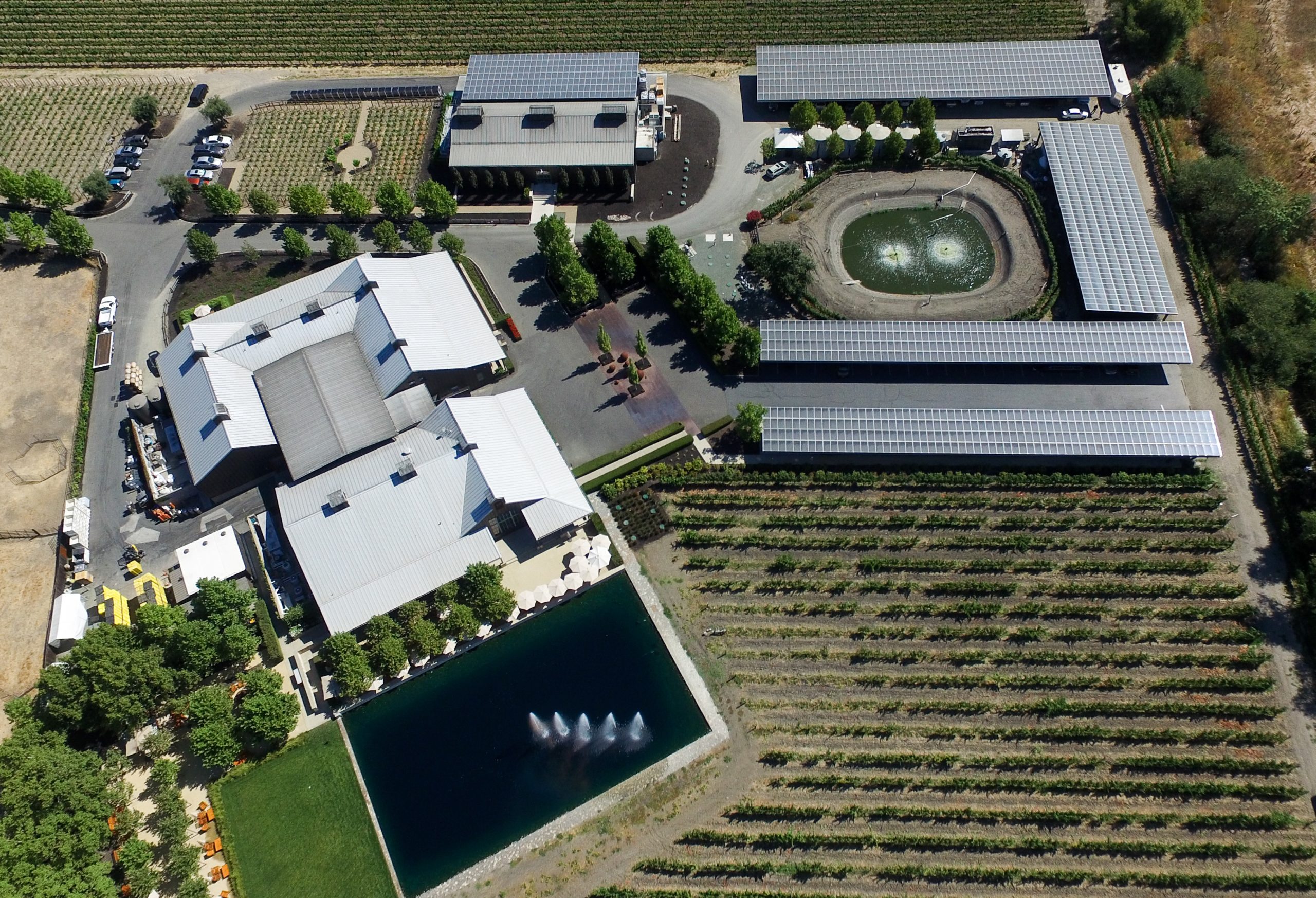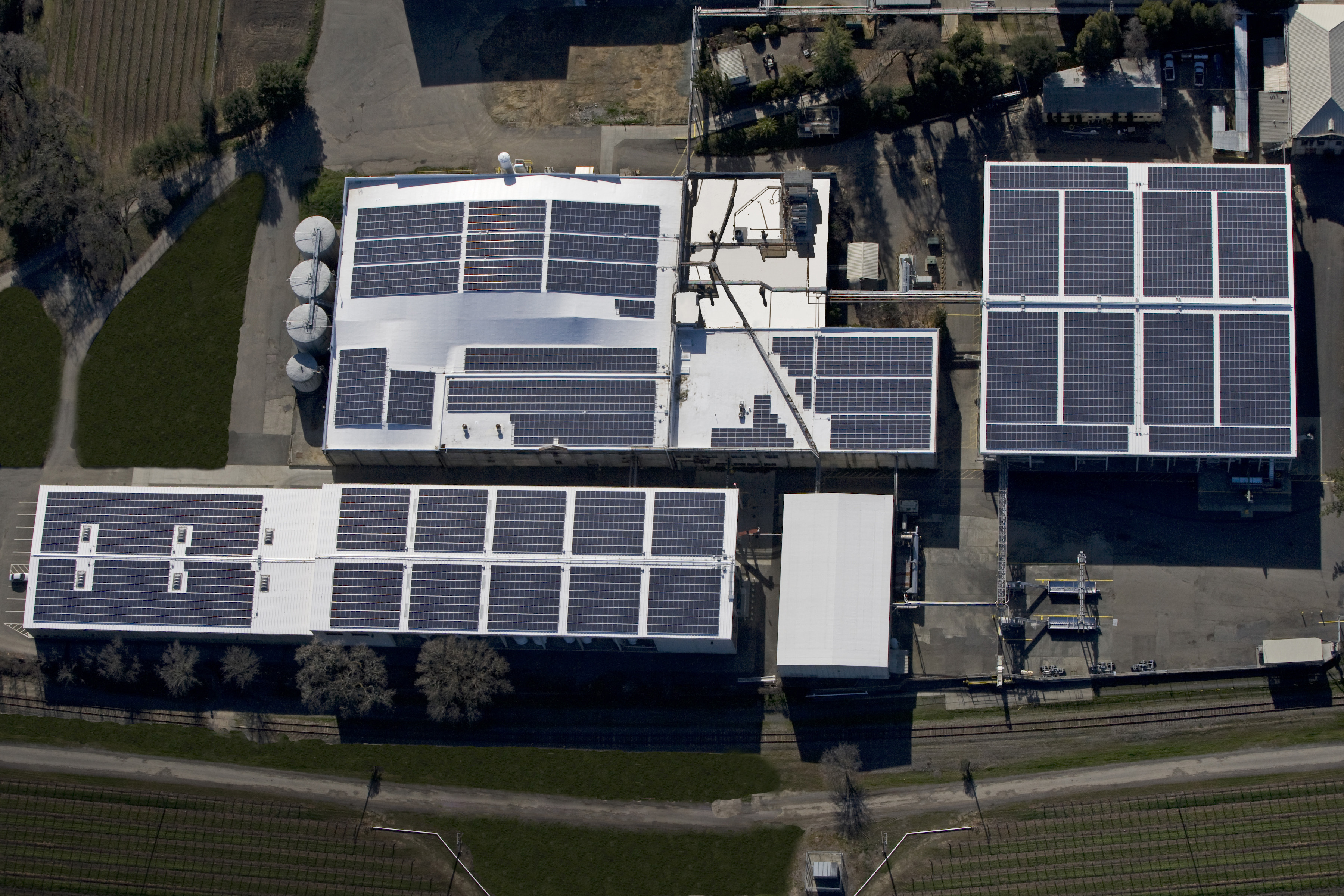 Featuring a custom solar covered canopy structure to house the winery’s fermentation tanks and production area, the 150,000 sq.ft. integrated roofing and solar installation is 1.2 MW (DC) and produces 1,683,594 kWh per year.