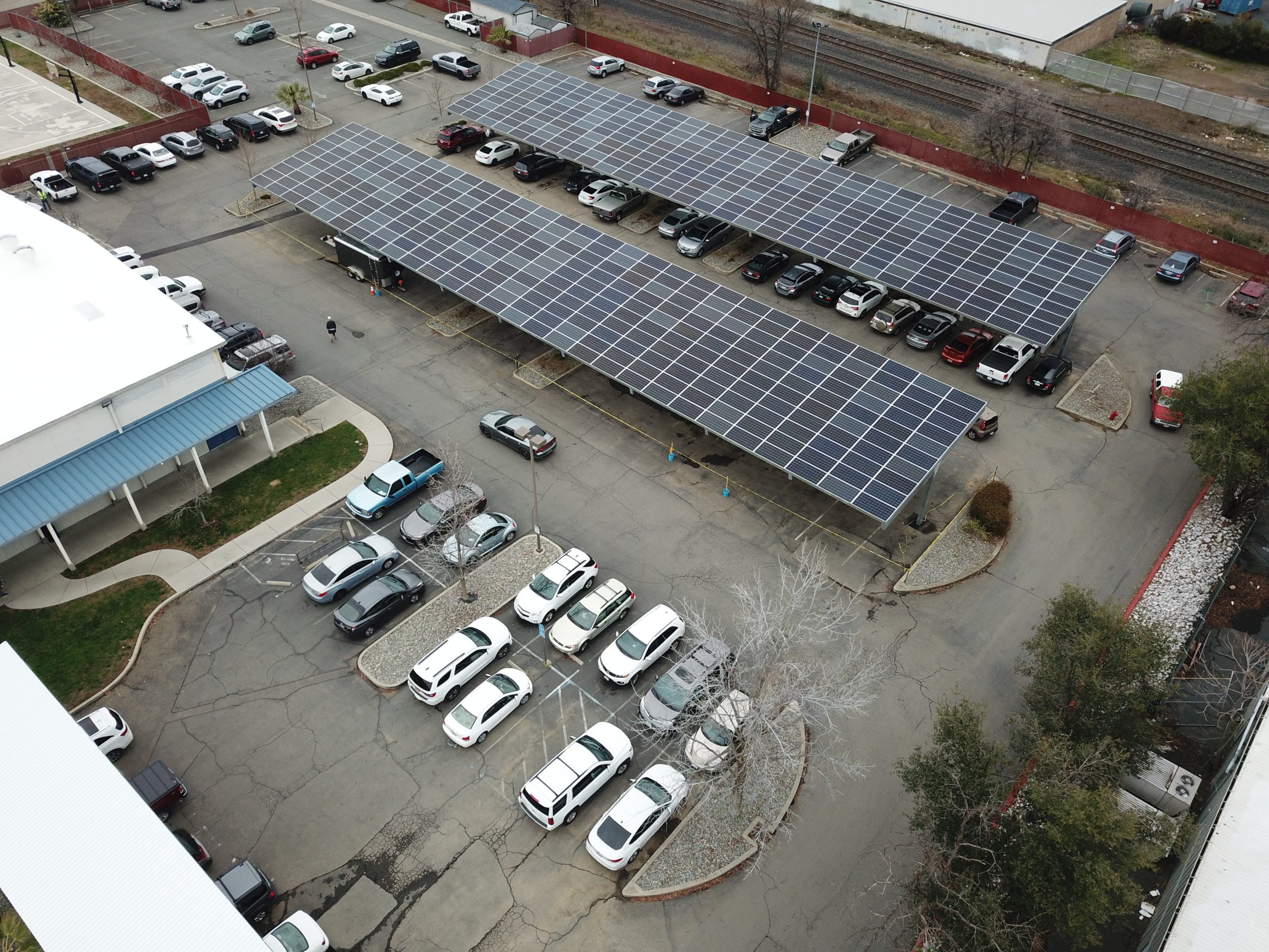 - System Size: 148.58 (DC) covered parking solar structure system